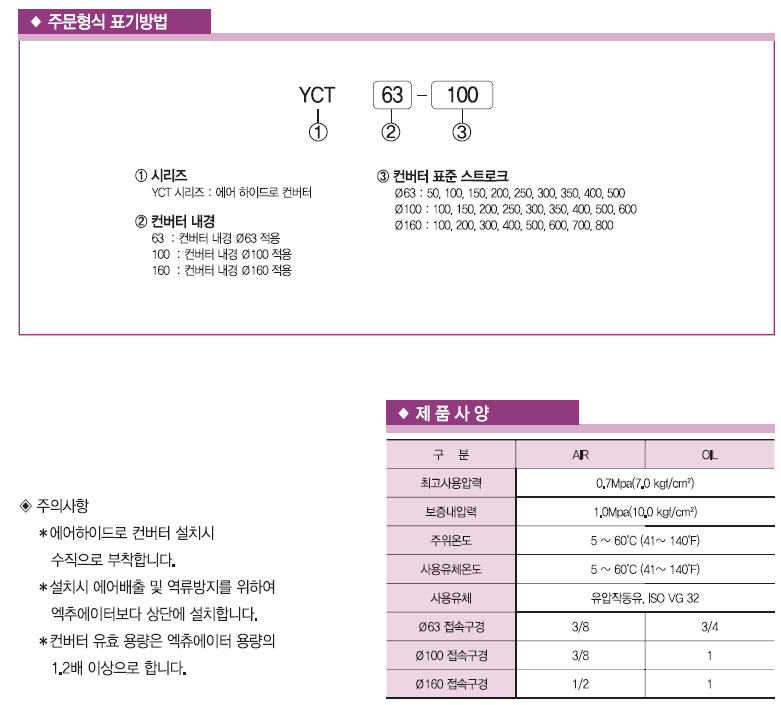 • 규격/옵션 YCT100-100