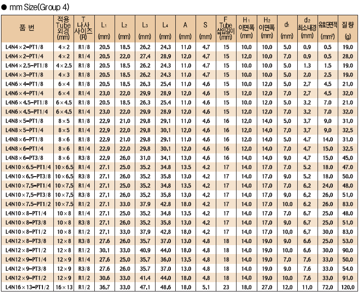 • 규격/옵션 L4N4X2-PT1/8