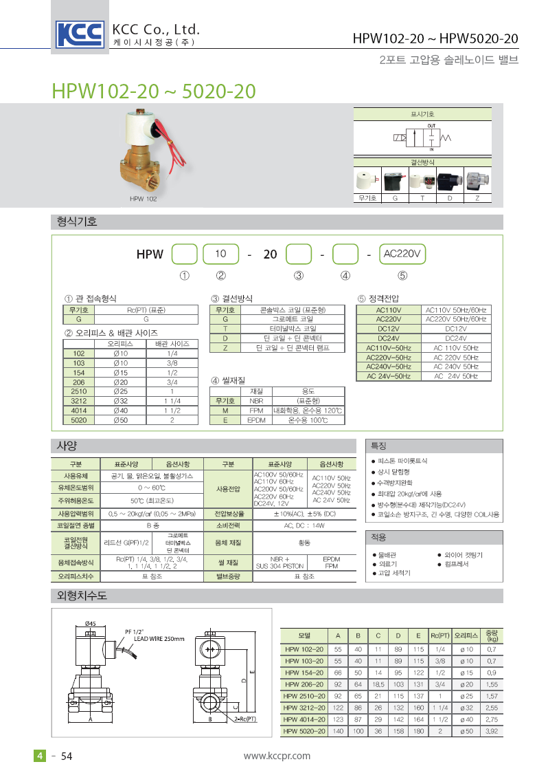 • 규격/옵션 HPW103-20K-AC220V