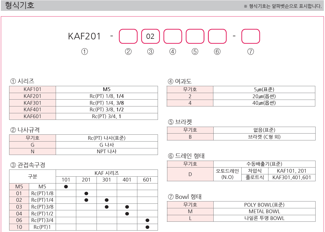 • 규격/옵션 KAF201-02