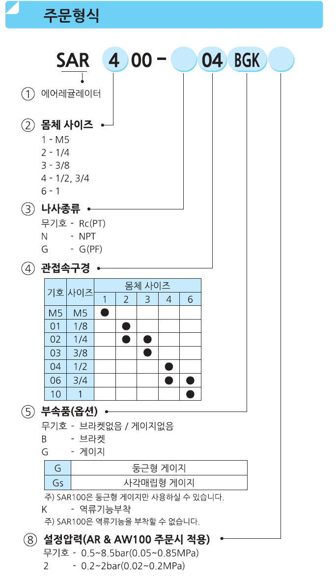 • 규격/옵션 SAR100-01BG